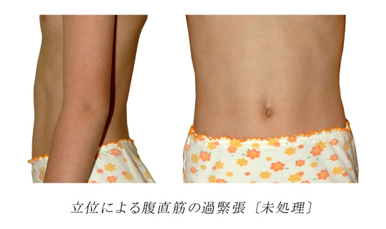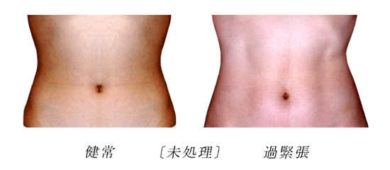 健常者と過緊張患者の腹直筋緊張状態を比較写真