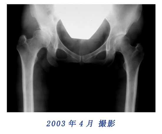 2003年と2005年に撮影されたレントゲン写真中、右の股関節にも顕著な変化を認められました。